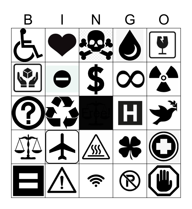This bingo card has 24 images and a free space.