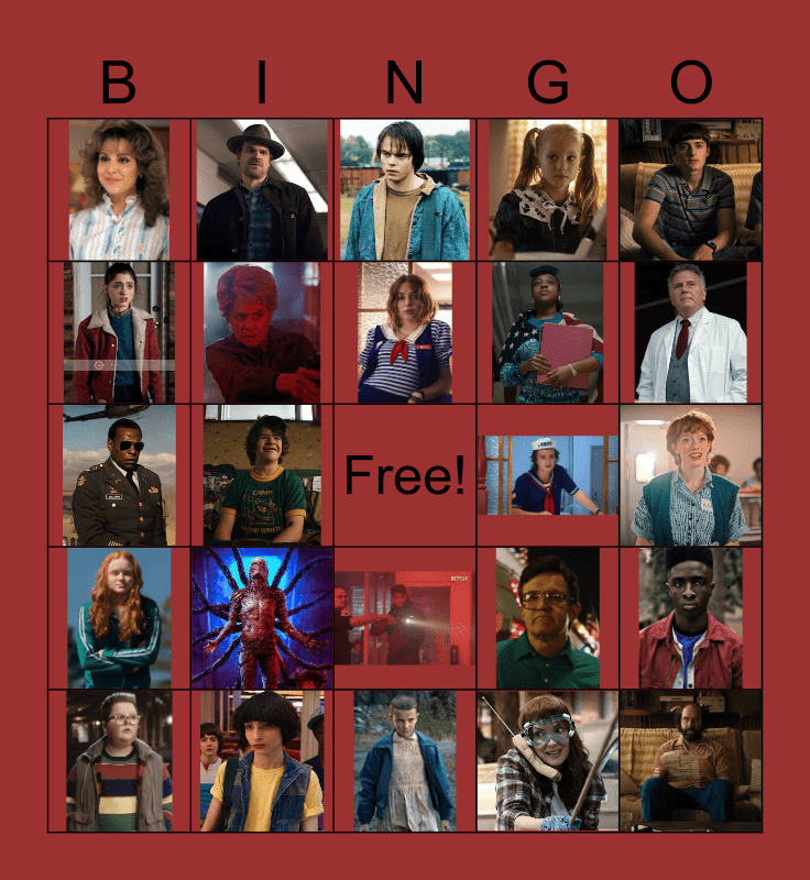 Stranger Things Bingo Card