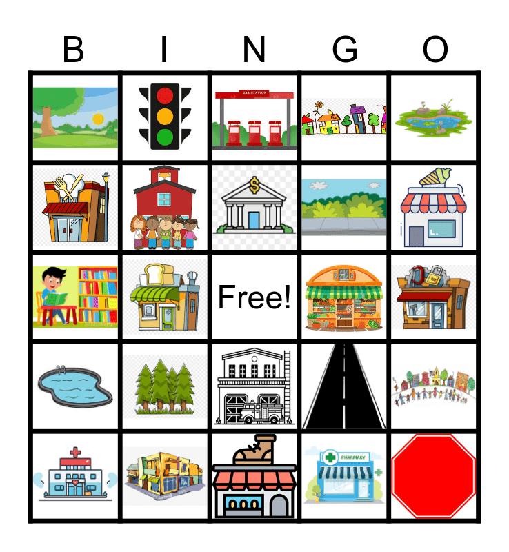 This bingo card has 24 images and a free space.