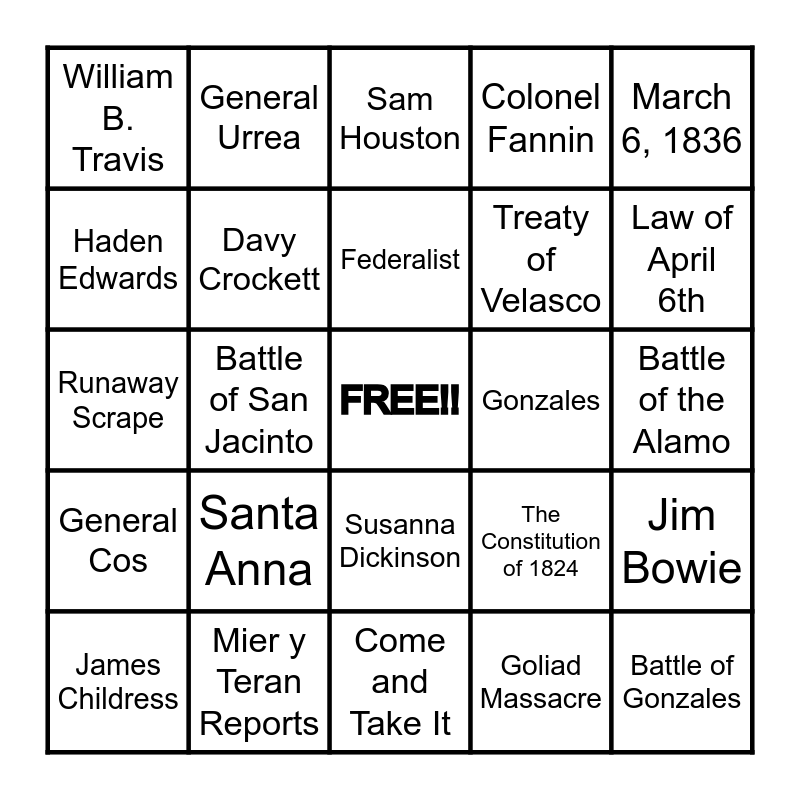 Texas Revolution Bingo | Texas Revolution | Texas Revolution | Texas Revolution | Texas Revolution