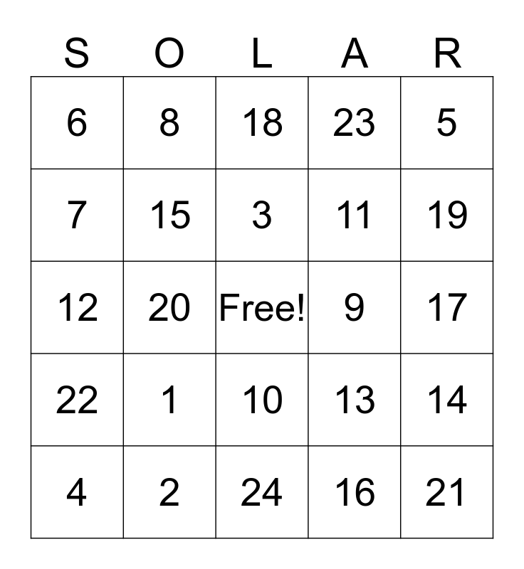 Solar Bingo! Bingo Card