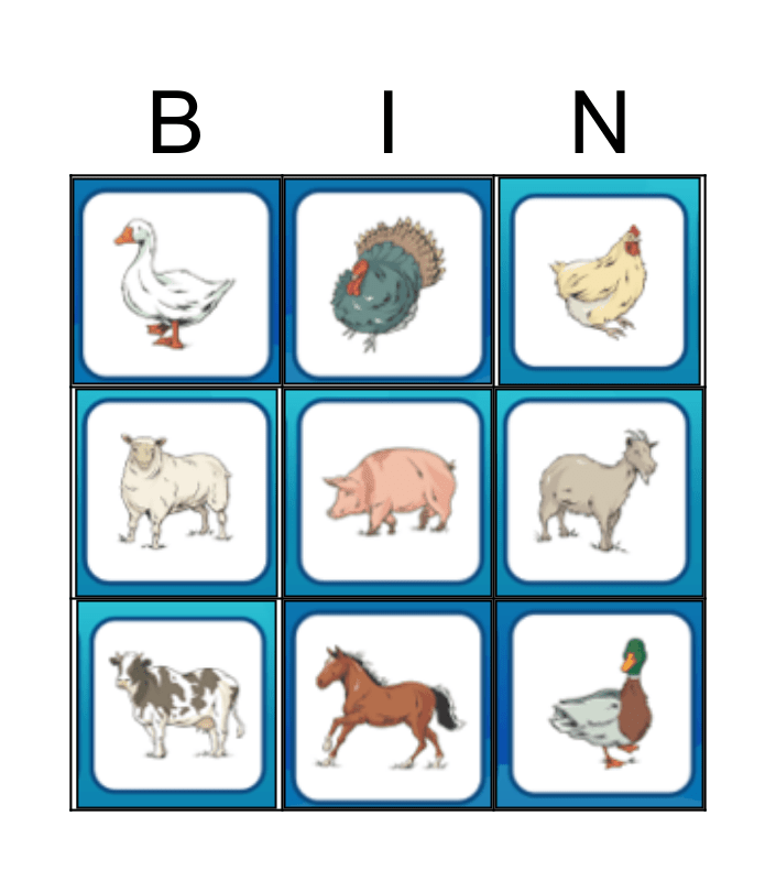 Animaux de la Ferme Bingo Card