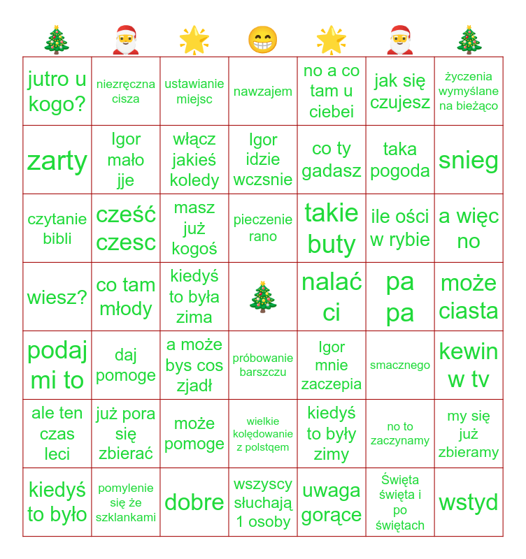 🎄🎅ŚWIĄTECZNE BINGO🎅🎄 | Typowe Polskie święta Bożego Narodzenia | WIGILIJNE | W I G I L I J N E | Święta