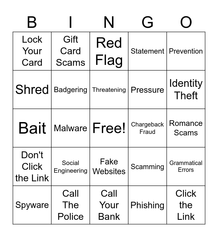 Scam Bingo! | Scam Bingo! | Scam Bingo! | Scam Bingo! | Fraud Prevention BankFinancial
