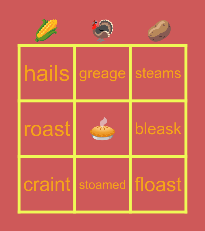 This bingo card has a free space and 8 words: bleask, steams, greage, craint, hails, floast, roast and stoamed.