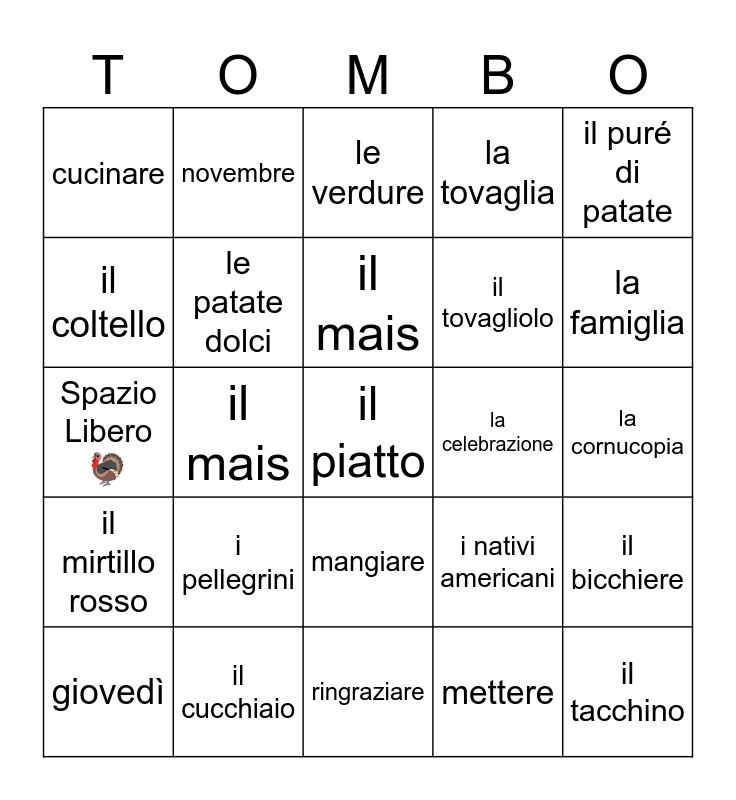Ringraziamento / Autunno | Thanksgiving | TOMBOLA | Year 8 Term 2 Il cibo 2 | Year 8 Term 2 Il cibo