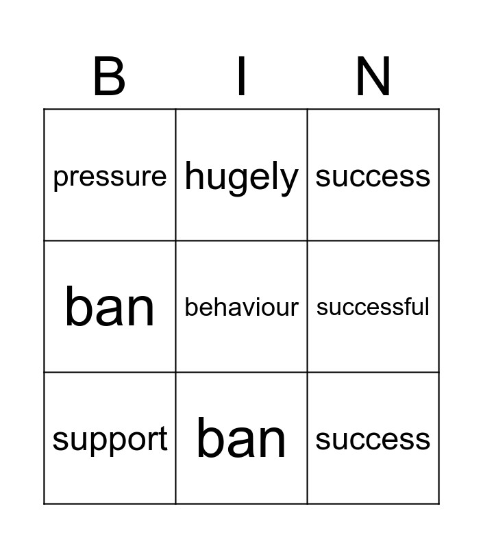 ⚠ This card has duplicate items: pushy (2), biggest (2), sports (2), poor (2), support (2), behaviour (2), pressure (2), hugely (2), exercise (2), ban (2), success (2), successful (2), strict (2), hard (2), confidence (2), abuse (2)