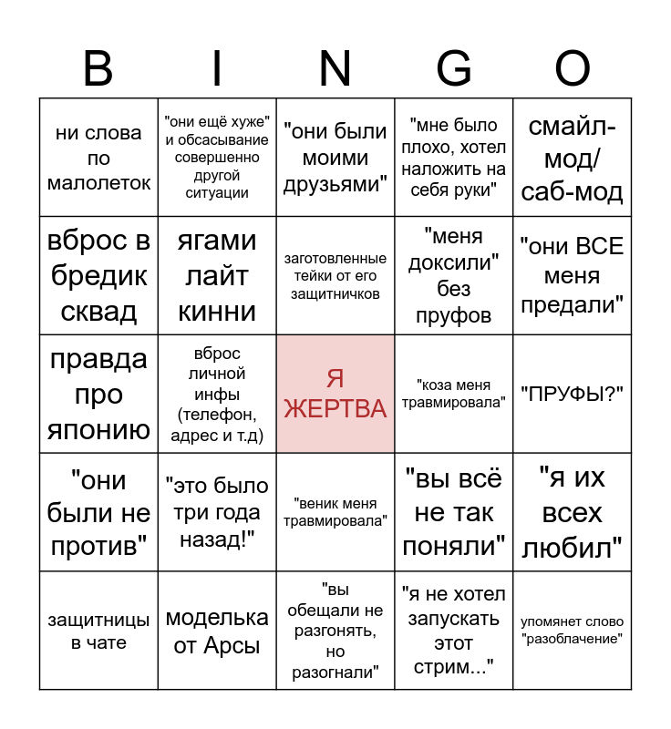 BULLSHIT BINGO | Абьюзер-газлайтер | Player's pink glasses | еблуша бинго | иван бинго