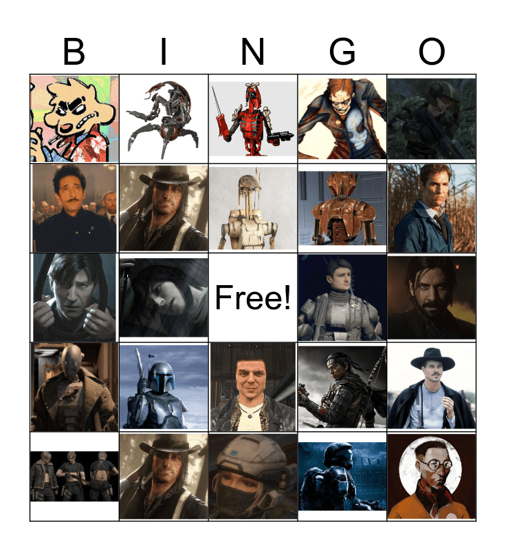 This bingo card has 24 images and a free space.