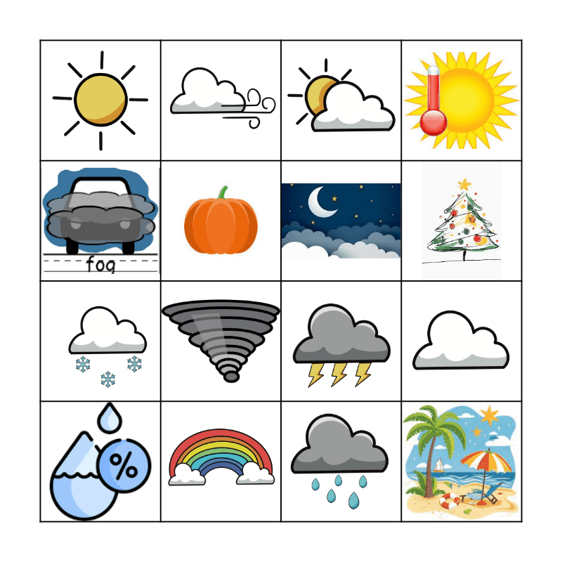 This bingo card has 16 images.