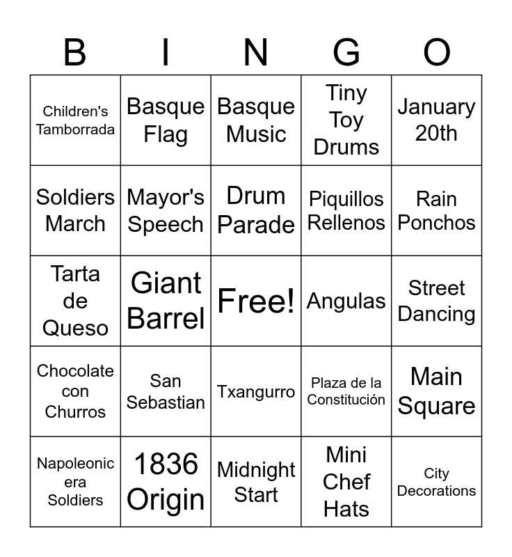 La Tamborrada | La Tamborrada | Ballet Bingo | Summer Bootcamp Bingo | Euskal Herria Photo Bingo Card