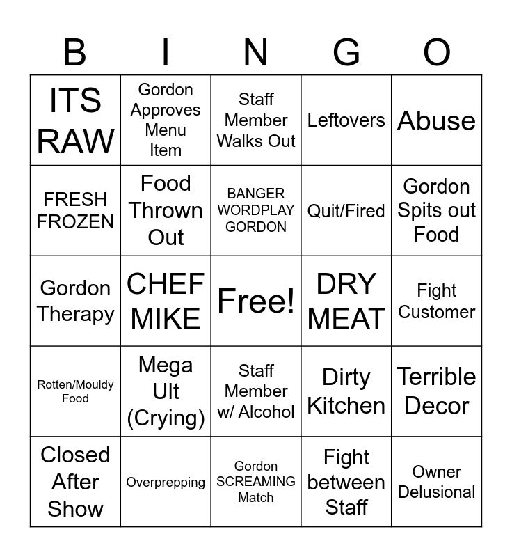gordon man bingo | kitchen nightmares bingo | Kitchen Nightmares Bingo | Kitchen Nightmares | Kitchen Nightmare Bingo