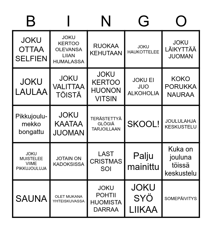PIKKUJOULU BINGO | PIKKUJOULU BINGO | PIKKUJOULU BINGO | HÄÄBINGO | Bilebingo