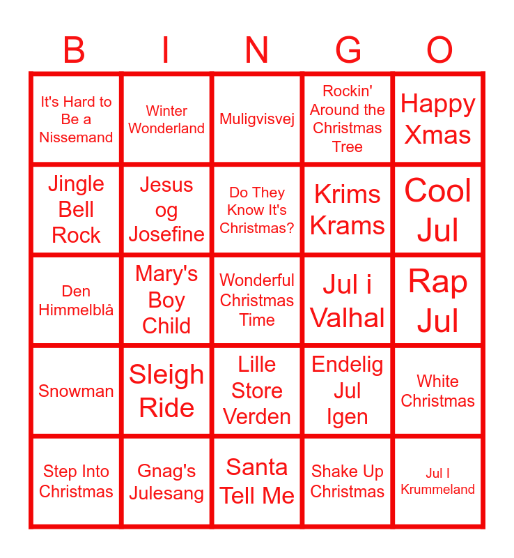JULE | JULE BINGO | Julemusik-bingo | Christmas Music Bingo | Christmas Music Bingo