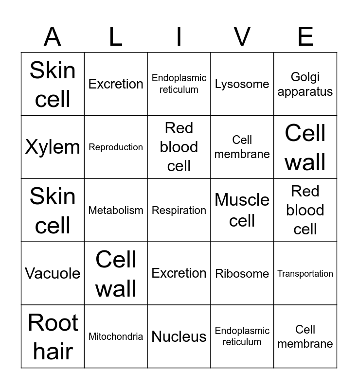 Bingo Alive! Life functions | Biology: Cells | Bingo Alive! Life functions | Bingo Alive! Life functions | Bingo Alive! Life functions
