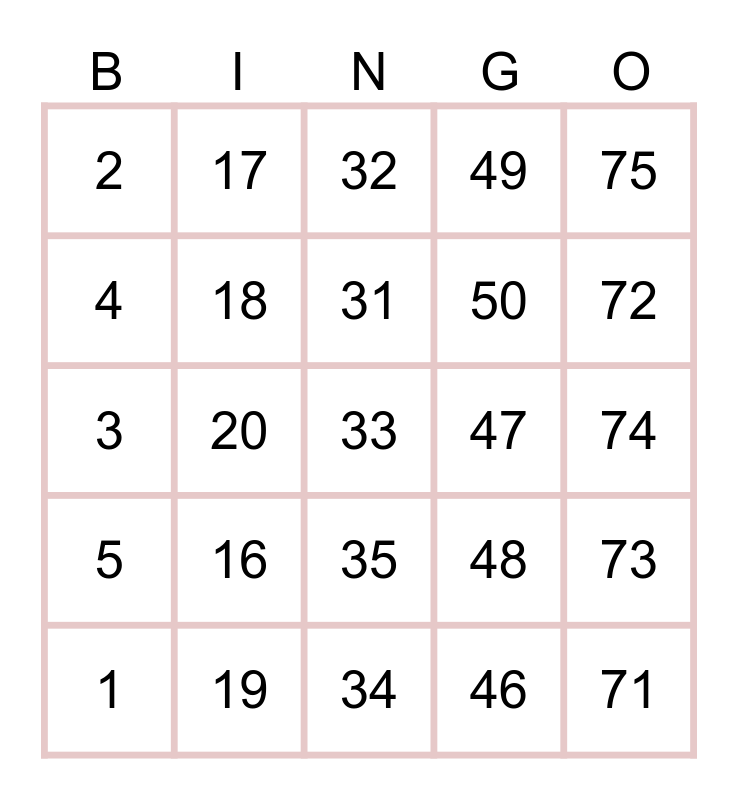 This bingo card has a free space and 24 words: 1, 16, 31, 46, 75, 2, 17, 32, 47, 74, 3, 18, 48, 73, 4, 19, 34, 49, 72, 5, 20, 35, 50 and 71.