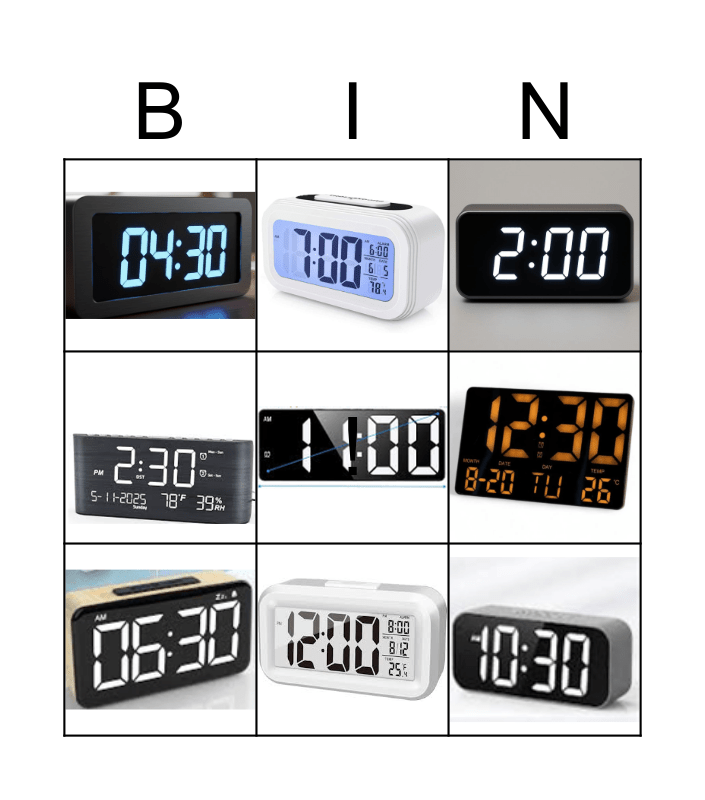 What's time is it? Bingo Card