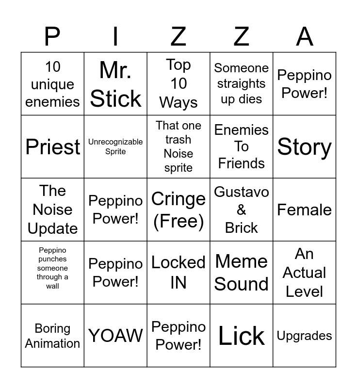 Pizza tower noise bingo card | Pizza tower noise bingo card | Pizza tower noise bingo card | Slop Tower Bingo | Breezers Breath of the Weth Bingo