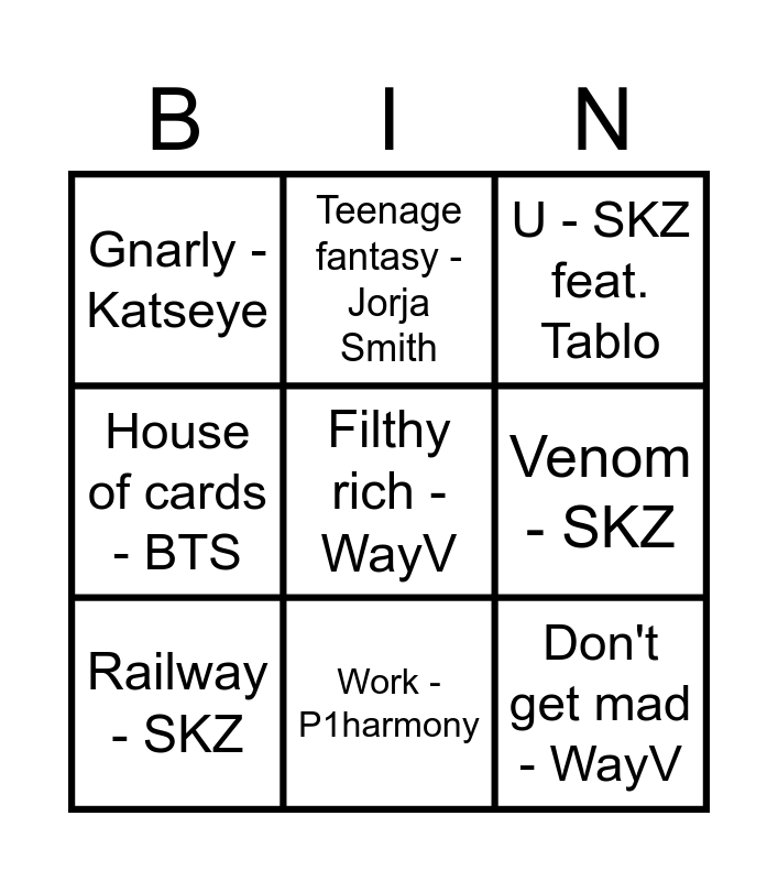 kpop taste bingo | @kangtyunn | @gyuushipship | Kpop bingo ^-^!! | @mintchoco747