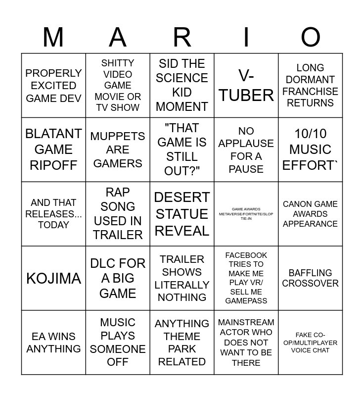 MARIO | MARIO | test | Game Awards 2025 Bingo | TGA 2025