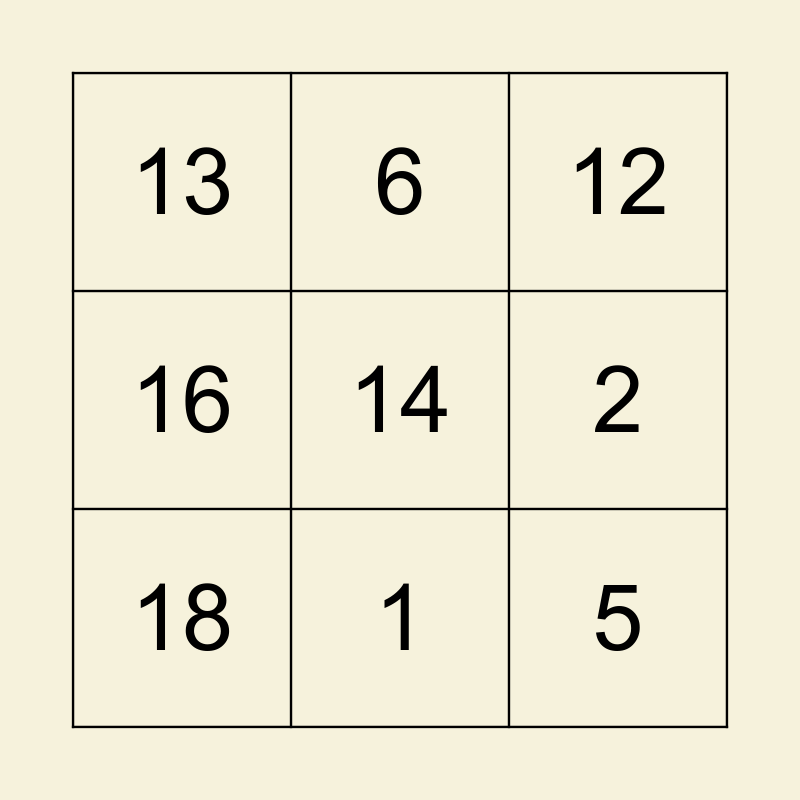 This bingo card has a free space and 17 words: 10, 11, 12, 13, 15, 16, 17, 18, 1, 2, 3, 4, 5, 6, 7, 8 and 9.