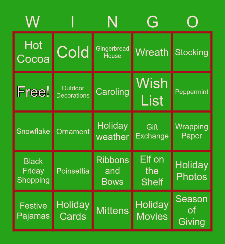 Holiday Bingo | The Wing Holiday Bingo! | The Wing Holiday Bingo! | The Wing Holiday Bingo! | Holiday Bingo