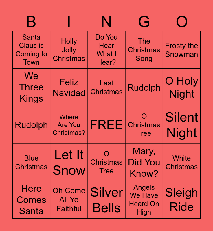 ⚠ This card has duplicate items: O Christmas Tree (2), Rudolph (2), The Christmas Song (2)