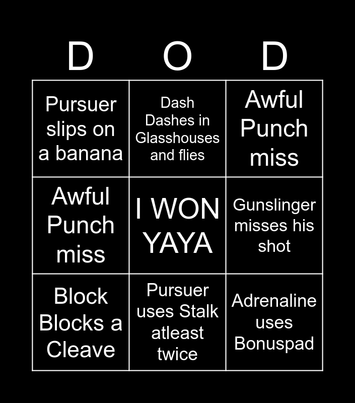 DOD Pursuer Bingo! | DOD Pursuer Bingo! | die of death | Die of Death Bingo | Pursuer board