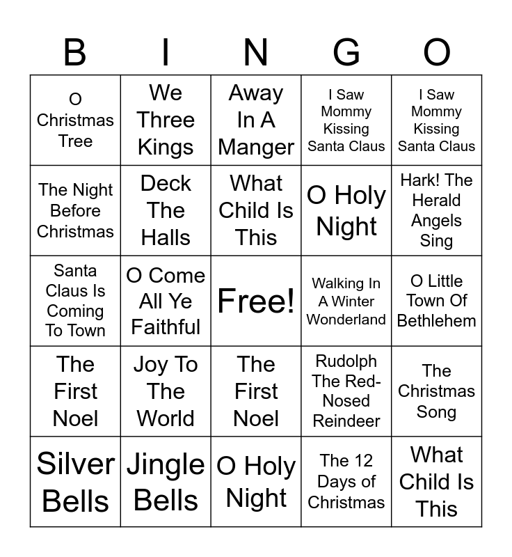 ⚠ This card has duplicate items: What Child Is This (2), I Saw Mommy Kissing Santa Claus (2), The First Noel (2)
