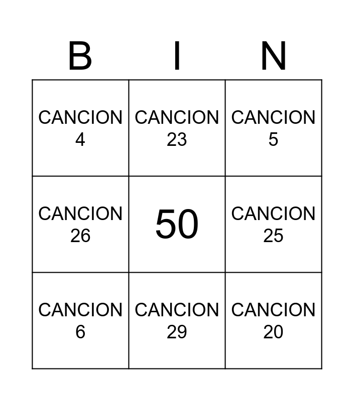 This bingo card has a free space and 31 words: DIEGO, CANCION 1, CANCION 2, CANCION 3, CANCION 4, CANCION 5, CANCION 6, CANCION 7, CANCION 8, CANCION 9, CANCION 10, CANCION 11, CANCION 12, CANCION 13, CANCION 14, CANCION 15, CANCION 16, CANCION 17, CANCION 18, CANCION 19, CANCION 20, CANCION 21, CANCION 22, CANCION 23, CANCION 24, CANCION 25, CANCION 26, CANCION 27, CANCION 28, CANCION 29 and CANCION 30.