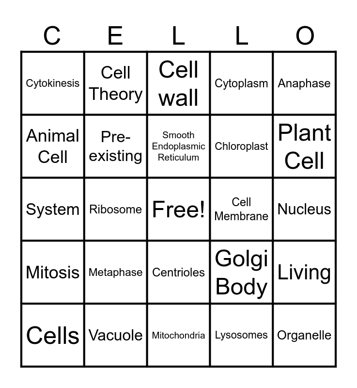 Cell Bingo | Organelles Bingo | Cells | Plant Cell Organelle Bingo | Organelles Bingo