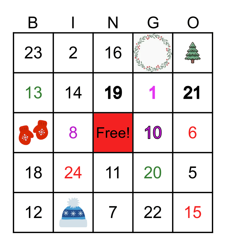 This bingo card has 4 images, a free space and 20 words: 24, 19, 12, 23, 13, 2, 10, 11, 1, 20, 5, 14, 22, 6, 16, 21, 8, 15, 18 and 7.