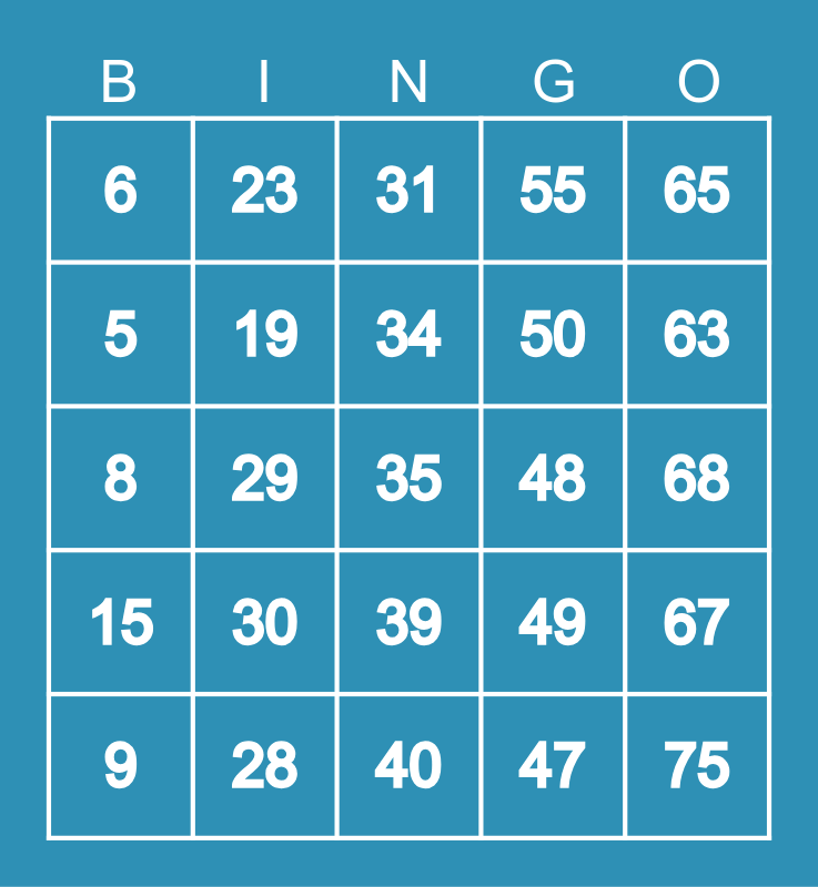 This bingo card has a free space and 75 words: 1, 16, 31, 46, 61, 2, 17, 32, 47, 62, 3, 18, 48, 63, 4, 19, 33, 49, 64, 5, 20, 34, 50, 65, 6, 21, 35, 51, 66, 7, 22, 36, 52, 67, 8, 23, 37, 53, 68, 9, 24, 38, 54, 69, 10, 25, 39, 55, 70, 11, 26, 40, 56, 71, 12, 27, 41, 57, 72, 13, 28, 42, 58, 73, 14, 29, 43, 59, 74, 15, 30, 44, 60, 75 and 45.