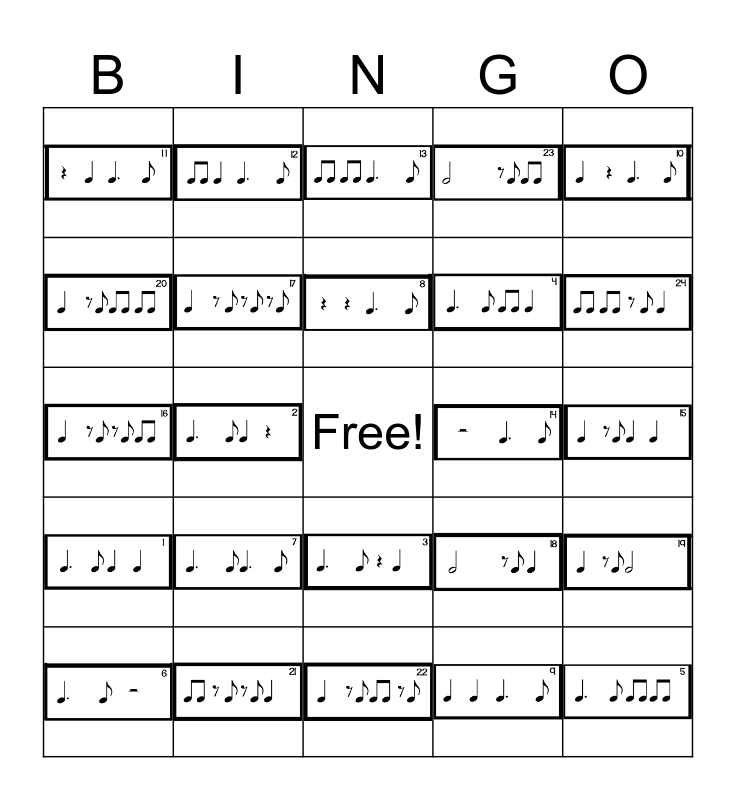 Rhythm Bingo - Level 2 Side A | 4th Grade Band Bingo Bonus Rehearsal | Polynomial Function | 3 Lines (70), 4 Lines (80), 5 Lines (90), 6+ Lines (100) | Polynomial Function