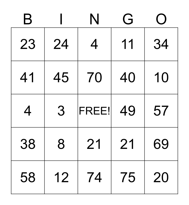 This bingo card has a free space and 99 words: 1, 2, 3, 4, 5, 6, 7, 8, 9, 10, 11, 12, 20, 21, 22, 23, 24, 13, 14, 15, 16, 17, 18, 19, 68, 69, 70, 71, 72, 73, 74, 75, 1, 2, 3, 4, 5, 6, 7, 8, 9, 10, 11, 12, 13, 14, 15, 16, 17, 18, 19, 20, 21, 22, 23, 24, 25, 26, 27, 28, 29, 30, 31, 32, 33, 34, 35, 36, 37, 38, 39, 40, 41, 42, 43, 44, 45, 46, 47, 48, 49, 50, 51, 52, 53, 54, 55, 56, 57, 58, 59, 60, 61, 62, 63, 64, 65, 66 and 67.