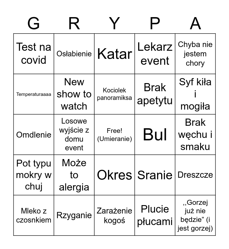 Grypa 2025 bingo | Spotkanie z zarządem | Polonez z zachodnim silnikiem Bingo | Pisowskie bingo | Język Polski Online!