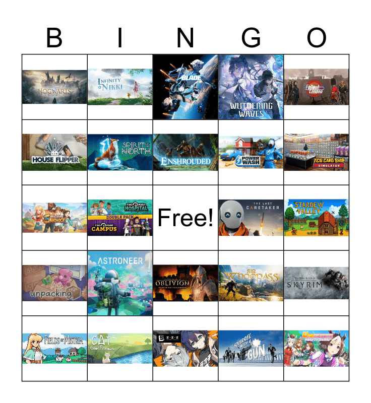 This bingo card has 24 images and a free space.