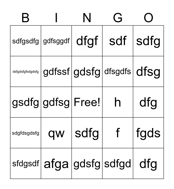 This bingo card has a free space and 24 words: qw, afga, gdsfg, sfdgsdf, sdfg, sdfgsdfg, dsfgdsfgfsdgdsfg, gdfsggdf, h, sdfg, dfsgdfs, gsdfg, f, fgds, gdfssf, sdfgd, dfg, dfgf, dfsg, gdfsg, dfg, sdgfdsgdsfg, sdf and gdsfg.