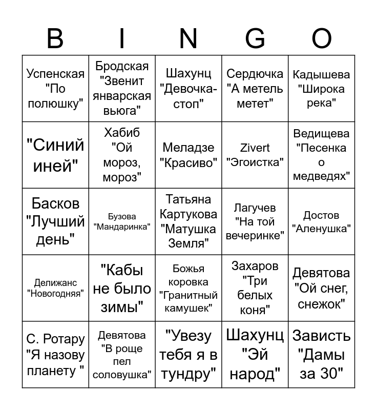 Новогоднее бинго | Новогоднее бинго | Новогоднее бинго | Новогоднее бинго | МУЗЫКАЛЬНОЕ