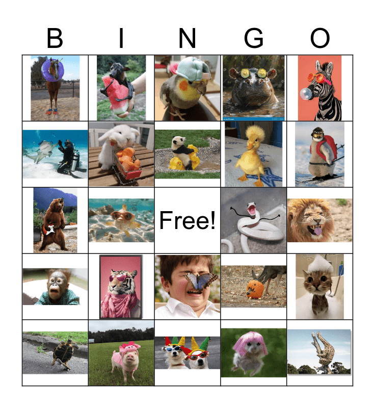 This bingo card has 26 images and a free space.