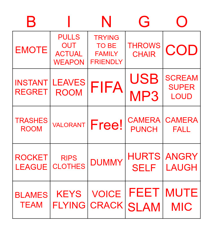 gamer rage | Gamer Rage Bingo | Streamer Rage | GAMER RAGE | Gamer Rage Bingo