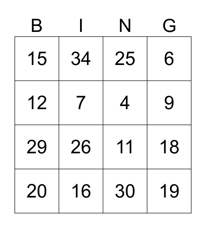 This bingo card has 35 words: 1, 2, 3, 4, 5, 6, 7, 8, 9, 10, 11, 12, 13, 14, 15, 16, 17, 18, 19, 20, 21, 22, 23, 24, 25, 26, 27, 28, 29, 30, 31, 32, 33, 34 and 35.