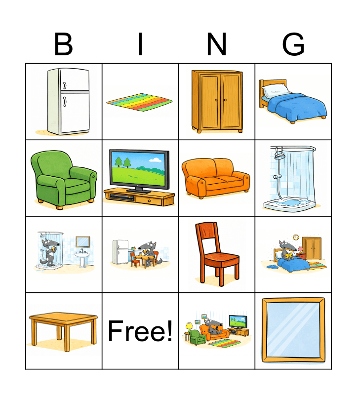 This bingo card has 15 images and 1 words: Free!.