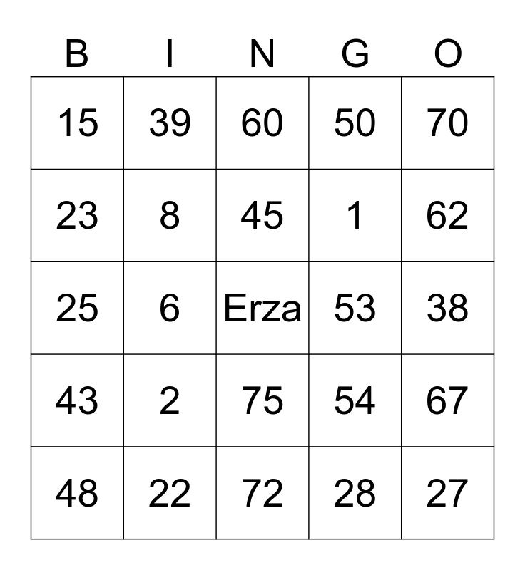 This bingo card has a free space and 24 words: 2, 22, 45, 48, 70, 15, 23, 39, 53, 75, 1, 25, 54, 67, 8, 28, 38, 60, 62, 6, 27, 43, 50 and 72.