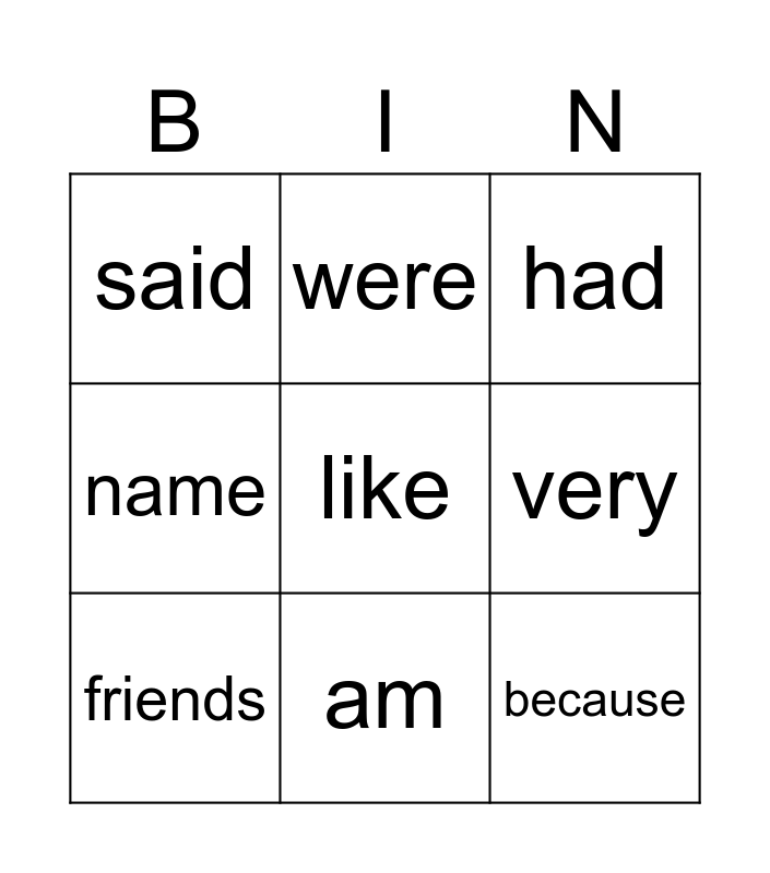This bingo card has 20 words: was, went, had, they, there, like, that, said, because, were, his, once, very, title, friends, them, am, name, called and favourite.