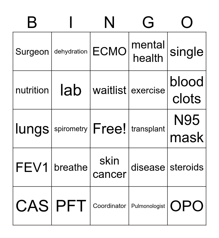 Lung Transplant BINGO | Lung Transplant | Lung Transplant BINGO | Lung Transplant BINGO | Lung Transplant BINGO