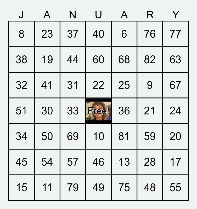 This bingo card has a free space and 90 words: 1, 16, 31, 46, 61, 2, 17, 32, 47, 62, 3, 18, 48, 63, 4, 19, 33, 49, 64, 5, 20, 34, 50, 65, 6, 21, 35, 51, 66, 7, 22, 36, 52, 67, 8, 23, 37, 53, 68, 9, 24, 38, 54, 69, 10, 25, 39, 55, 70, 11, 26, 40, 56, 71, 12, 27, 41, 57, 72, 13, 28, 42, 58, 73, 14, 29, 43, 59, 74, 15, 30, 44, 60, 75, 76, 77, 45, 78, 79, 80, 81, 82, 83, 84, 85, 86, 87, 88, 89 and 90.