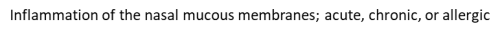 Inflammation of the nasal mucous membranes; acute, chronic, or allergic