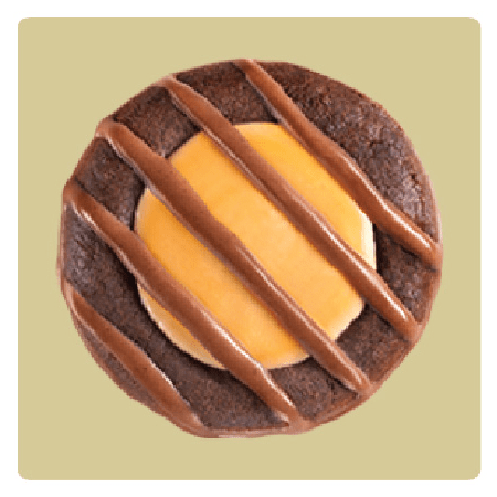 Indulgent brownie-inspired cookies topped with caramel flavored crème with a hint of sea salt