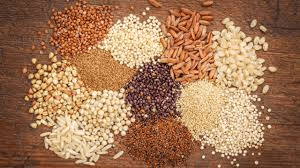 Small, hard, dry fruits or seeds of grass-like plants (cereals) and legumes, harvested for food or animal feed